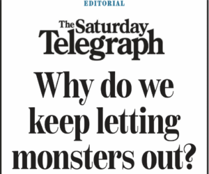 Why do we keep letting monsters out?That’s the headline on the top editorial in the Saturday Telegraph (26/4/2025). The context is the latest murder of a young woman (Audrey Griffin) by a man free on parole yet known as a violent predator (Adrian Torrens). “A man who should never have been on the streets,” went the editorial.